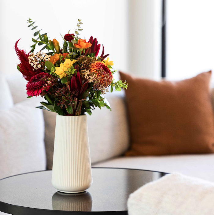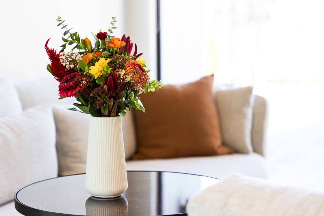 One of the joys of flowers is how easily they can reflect the changing seasons. In autumn, warm tones and textured foliage can add depth to your home styling. In spring and summer, lighter blooms bring freshness and brightness to your space.