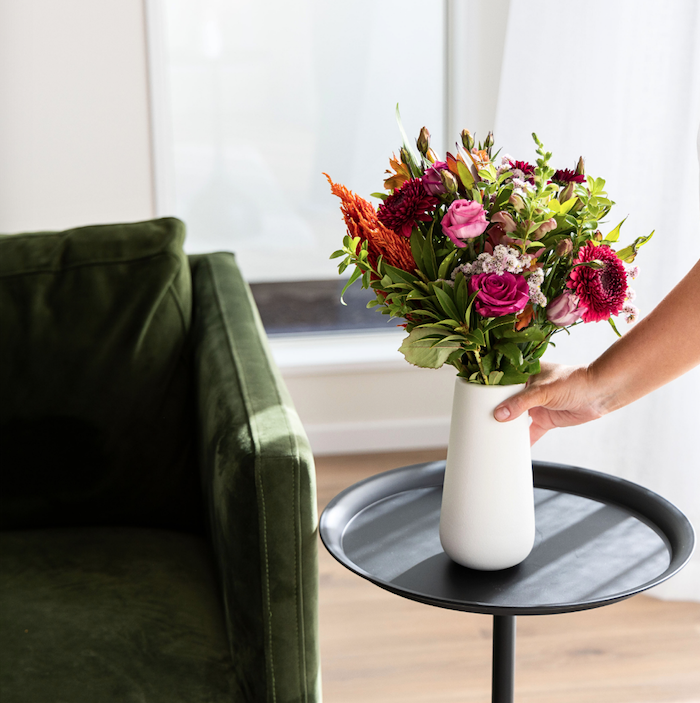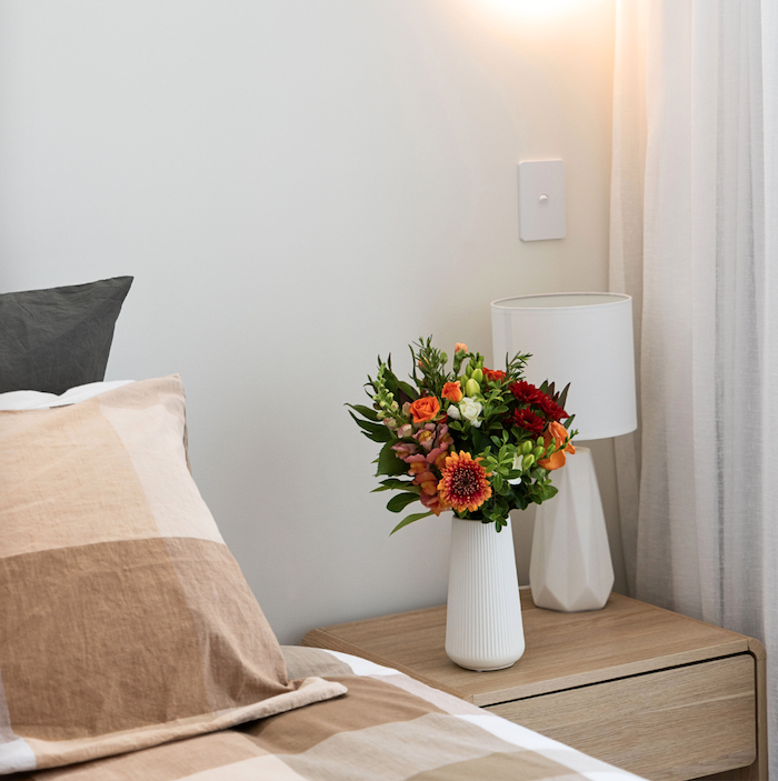 Choose flowers that complement your home’s colour palette, or opt for something seasonal to bring a fresh feeling to the space.