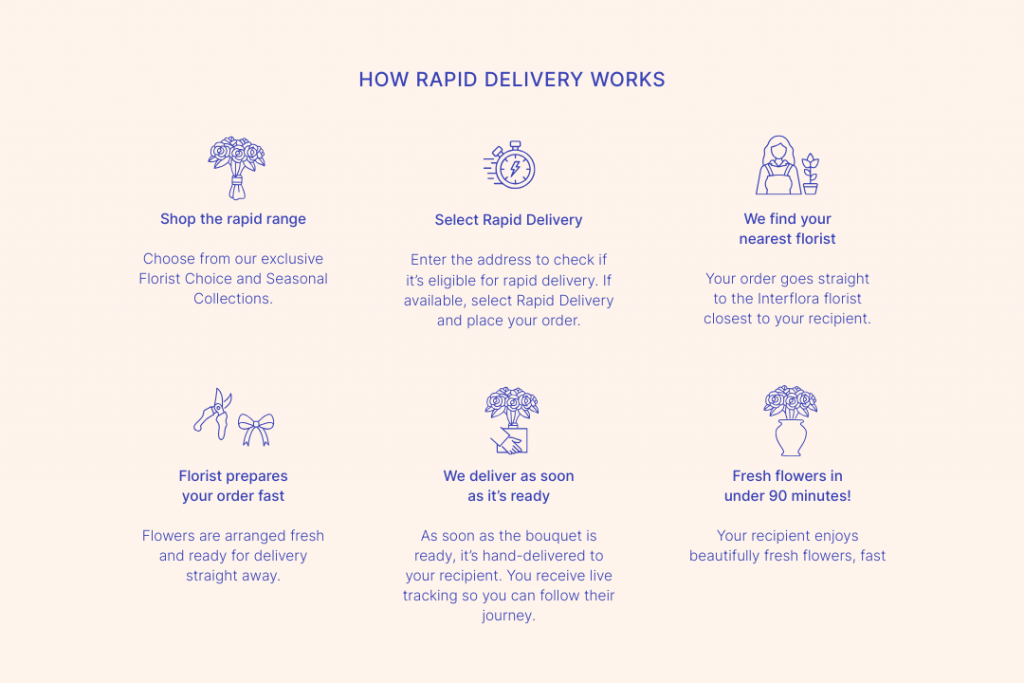 When words aren’t enough, flowers speak volumes. And now, they can arrive even faster. We’re excited to launch our brand-new Rapid Delivery service, designed to get beautiful, hand-crafted blooms to your loved ones in under 90 minutes.